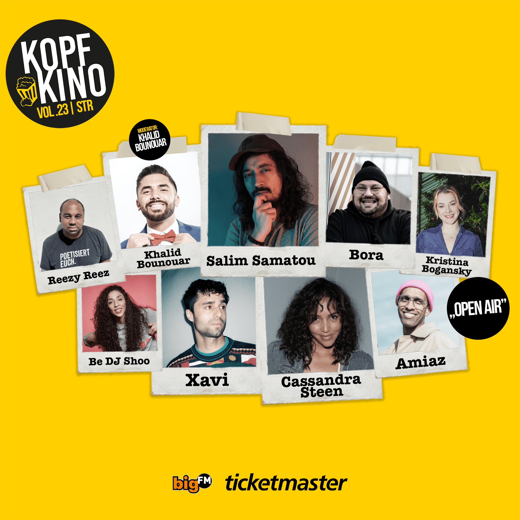 „Kopfkino“ bietet die perfekte Mixtur aus Poetry, Comedy und Live-Musik, zusammengeschnürt zu einer dreistündigen Experience für Zuschauer*innen und Akteur*innen. Dabei geht es von talentierten Newcomer*innen, bis hin zu renommierten Künstler*innen und echten Lokalheld*innen.