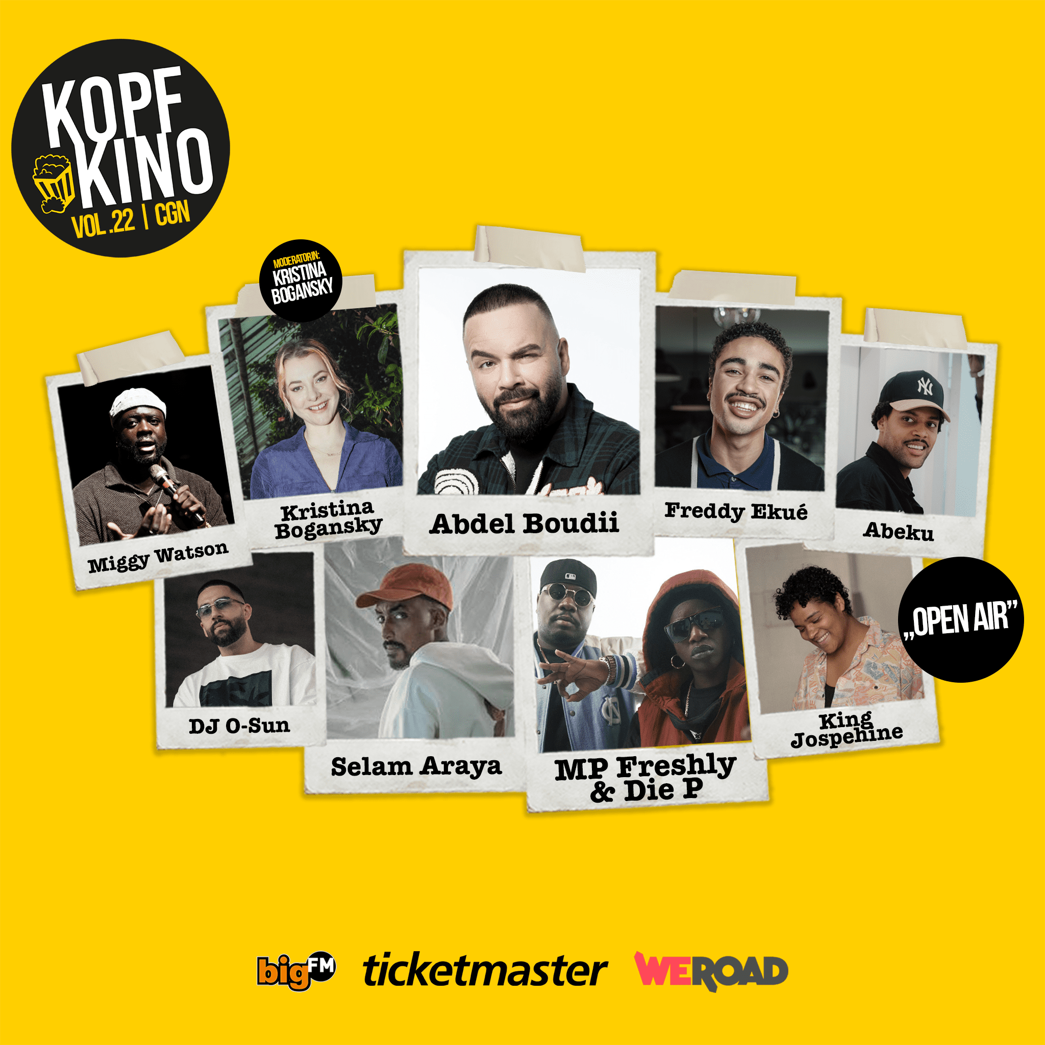 Das gesamte Event hat einen urbanen Charakter und verbindet nicht nur die drei unterschiedlichen Disziplinen miteinander, sondern zeigt im Line-Up, wie im Publikum, die wunderbare, kulturelle Vielfalt unserer Republik mit großem Fokus auf Diversität in allen Bereichen. Kopfkino bildet einen Platz für ALLE – unabhängig von Geschlecht, sexueller Orientierung oder Herkunft und engagiert sich für Inklusion von Menschen mit Beeinträchtigung.